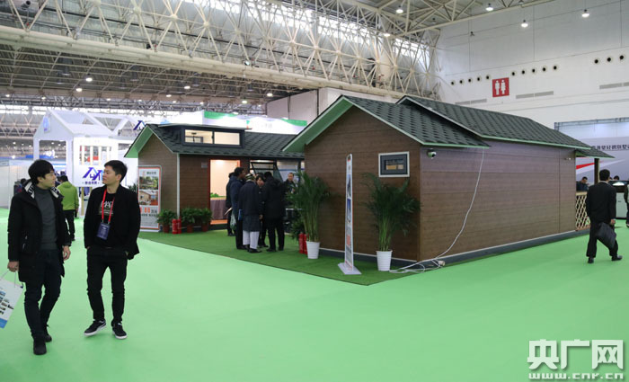 圖為:博覽會(huì)現(xiàn)場(chǎng)展出的一體式箱房 央廣網(wǎng)記者張卓 攝