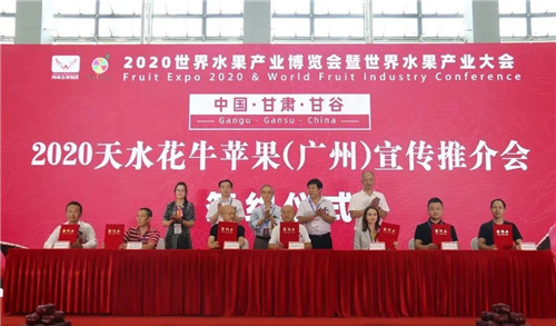 9月25日,由甘谷縣人民政府和天水市農業農村局牽頭,甘谷縣農業農村局和甘谷縣果品產業服務中心承辦的中國?甘肅?甘谷2020天水花牛蘋果展示展銷及宣傳推介活動在廣州?廣交會展館B區11.3館隆重舉行。