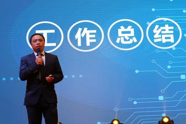 集體合唱結束后,王照云董事長信步走上舞臺,向現場嘉賓與鴻威全體員工進行工作匯報。