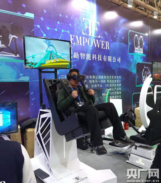 圖為:一名觀眾正在體驗參展商展出的VR游戲 央廣網記者張卓 攝